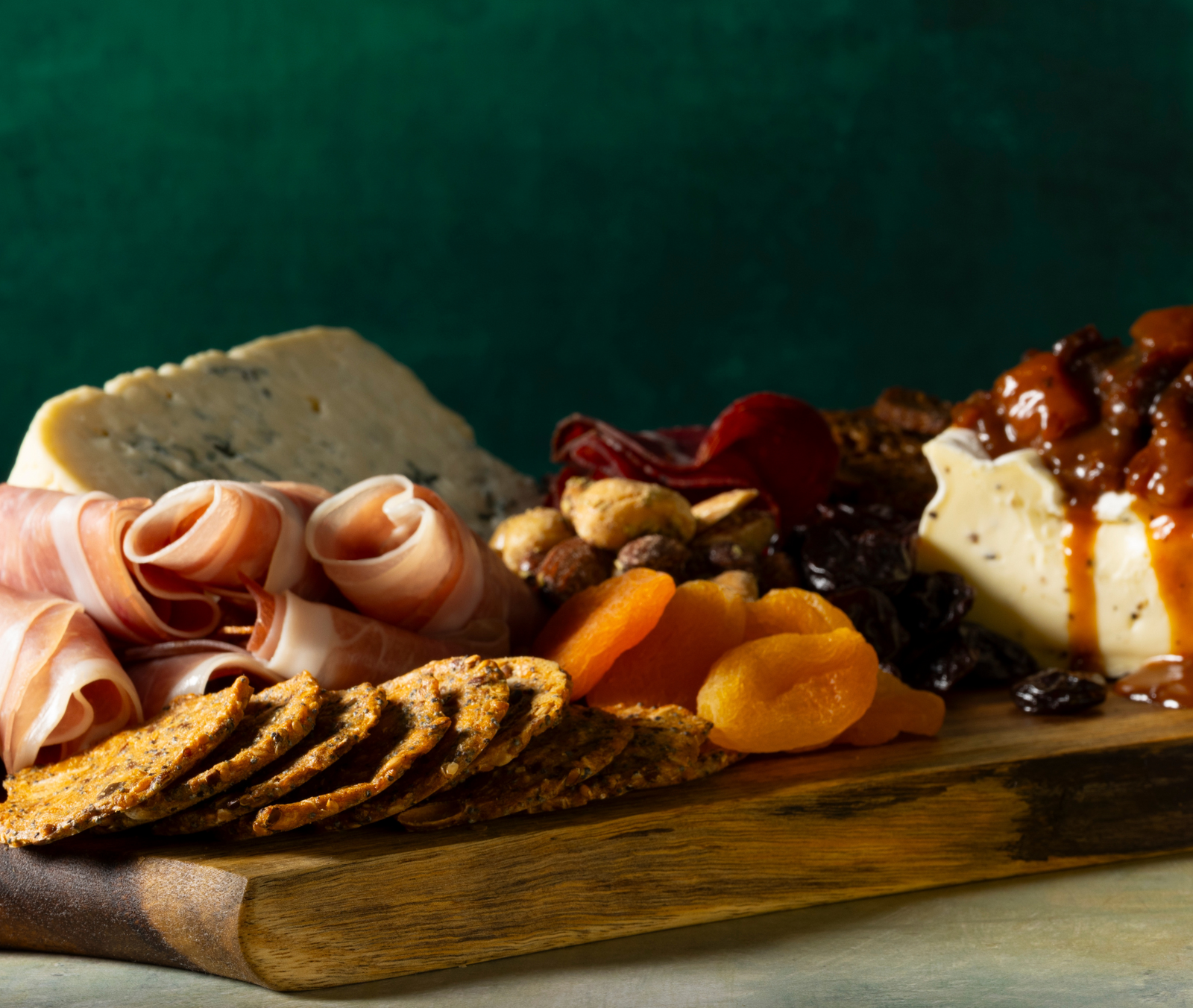 OohNami! Sweet Chili Mustard Sauce simmered with dried apricots and cherries, made into an Italian-Asian mostarda. Served with grilled pork chops or as part of a cheese and charcuterie board.